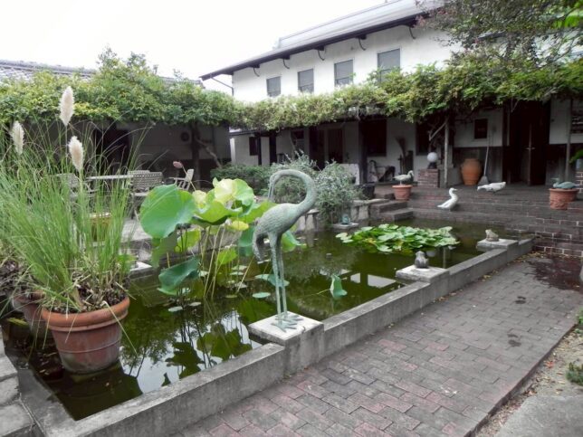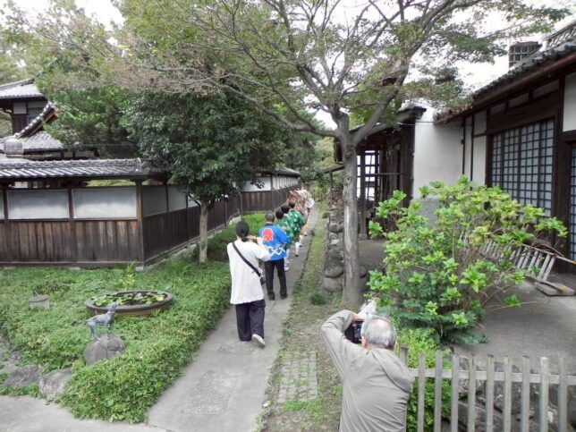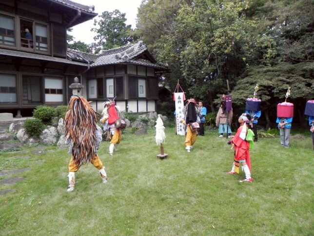 ④の川端家住宅での舞からは、獅子頭を大人に付け替えて踊り手全員で舞を披露しました。川端家住宅は2001年(平成13年)に国の有形登録文化財に指定された建物で普段は非公開ですが、当日は獅子舞披露のために開放されました。